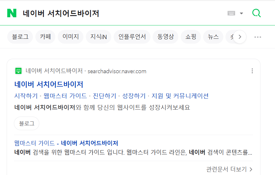 이 과정이 마무리 되었다면, 1~2일 후 네이버 검색 창에서 내 티스토리 블로그를 검색 결과에서 확인할 수 있게 됩니다.