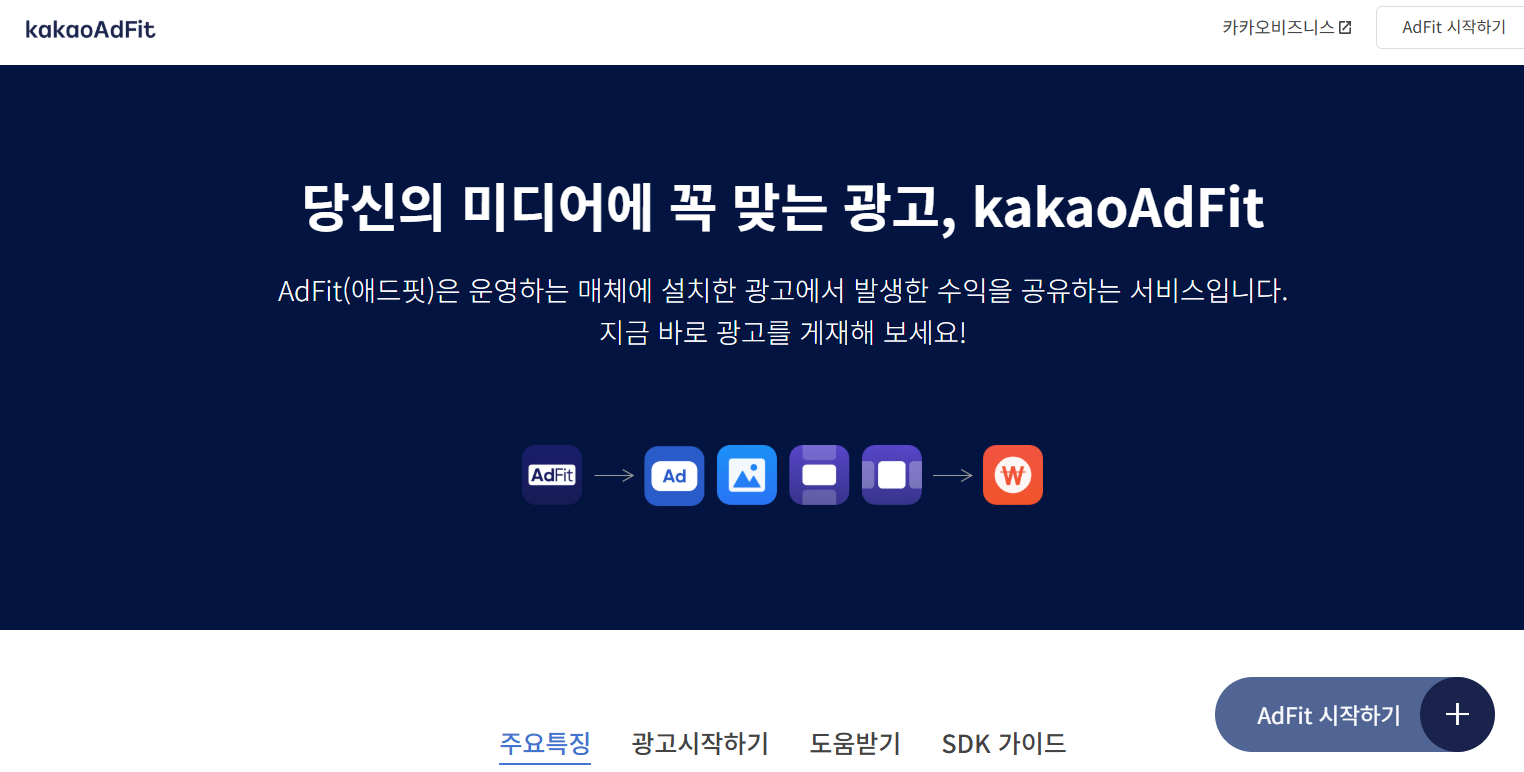 - 카카오 애드핏 관리자 페이지(adfit.kakao.com)에 로그인 후