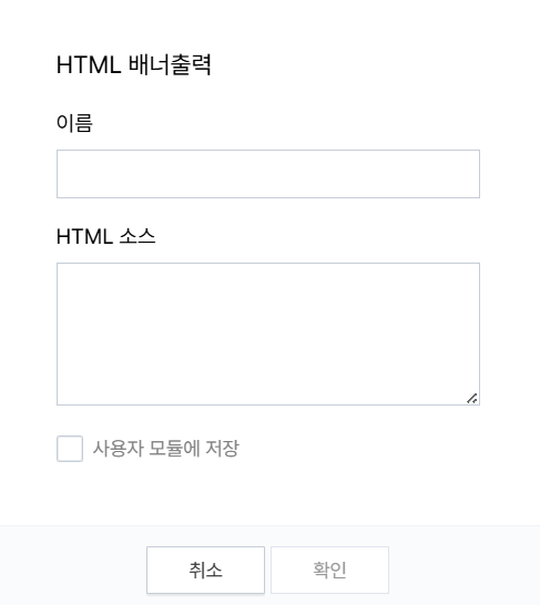 html 배너 출력 +를 누르면, 오른쪽에 화면에서 편집이 가능해집니다.