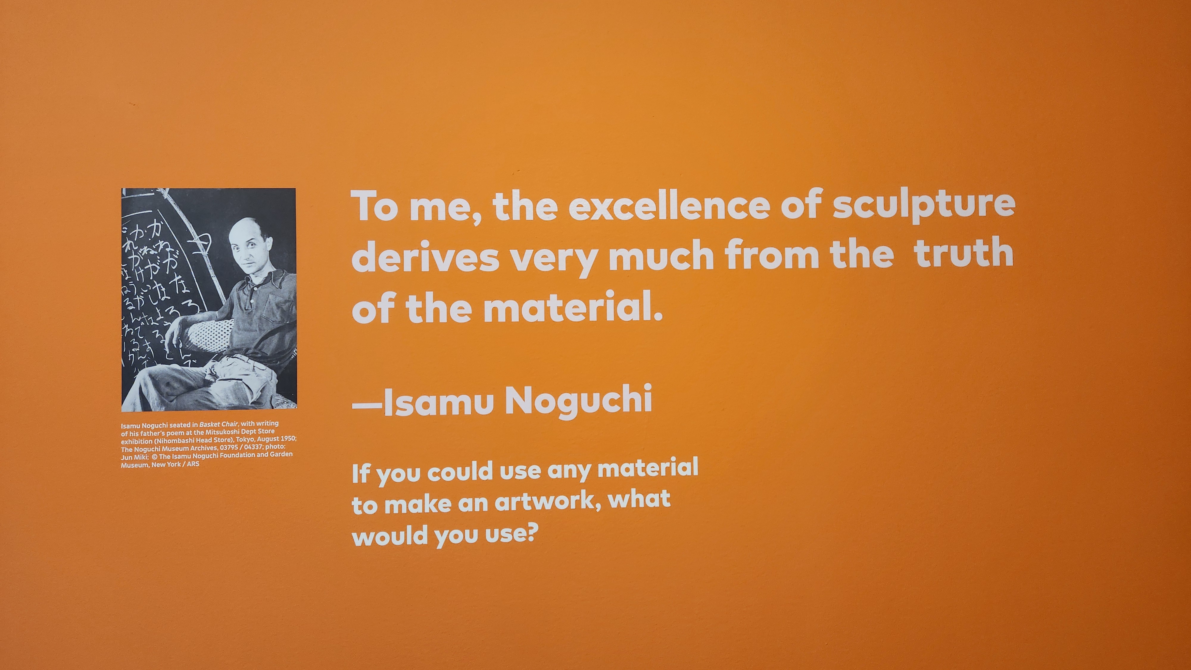 오늘 샌프란시스코 현대미술관(SFMOMA)을 거닐다가 오렌지빛 벽 한가득 적힌 한 문구 앞에 멈춰섰다. 부드러운 미소의 작가, 노구치 이사무(Isamu Noguchi)의 흑백 사진과 함께 굵고 명쾌하게 적힌 글: