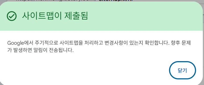 - 구글이 제출된 사이트맵을 다시 크롤링하고 인식하는 데에는 약간의 시간이 걸립니다.