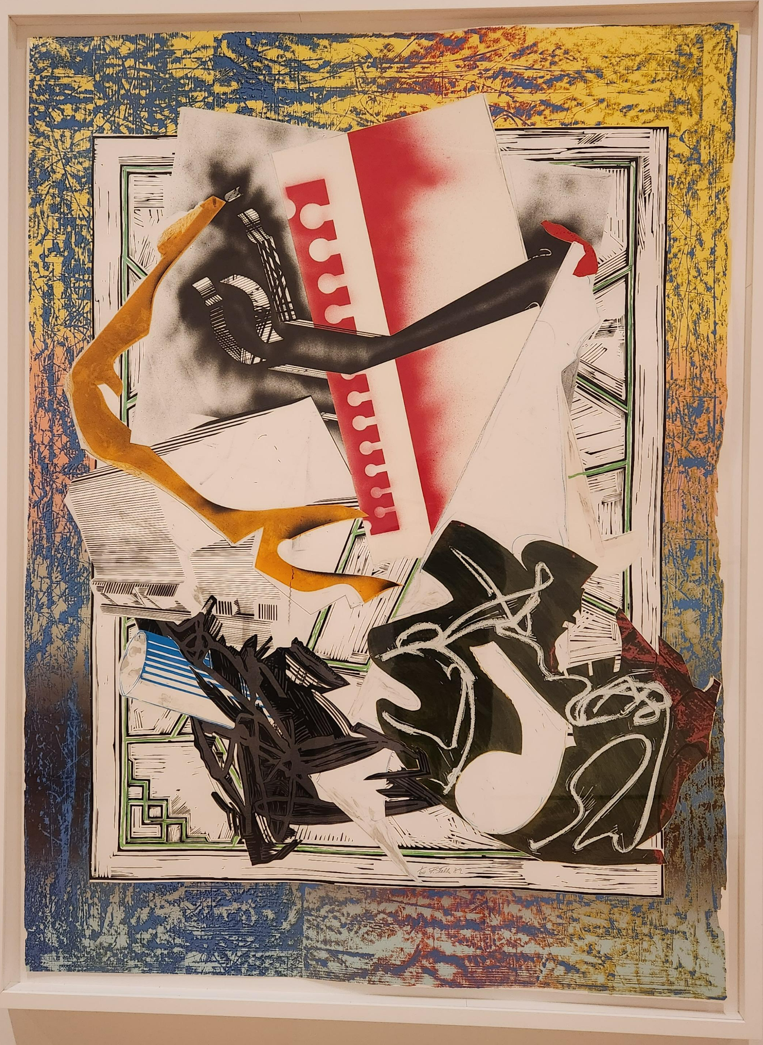 오늘 샌프란시스코 현대미술관(SFMOMA) 구석구석을 돌아보다 진짜 눈이 번쩍 뜨이는 작품을 만났다. 한눈에 들어오는 거대한 에너지―프랭크 스텔라(Frank Stella)의 ‘The Waves’ 연작 중 한 점이다. 가까이 다가가 보니, 잘려진 종이 조각, 실크스크린, 리놀륨 판, 대담하게 퍼지는 색면과 흩뿌려진 잉크, 그리고 만화처럼 자유분방한 선들이 서로 뒤엉켜 있다. 덕분에 익숙한 사각 프레임 속 장면이 아니라, 바다가 넘실대는 만화경처럼 보인다.
