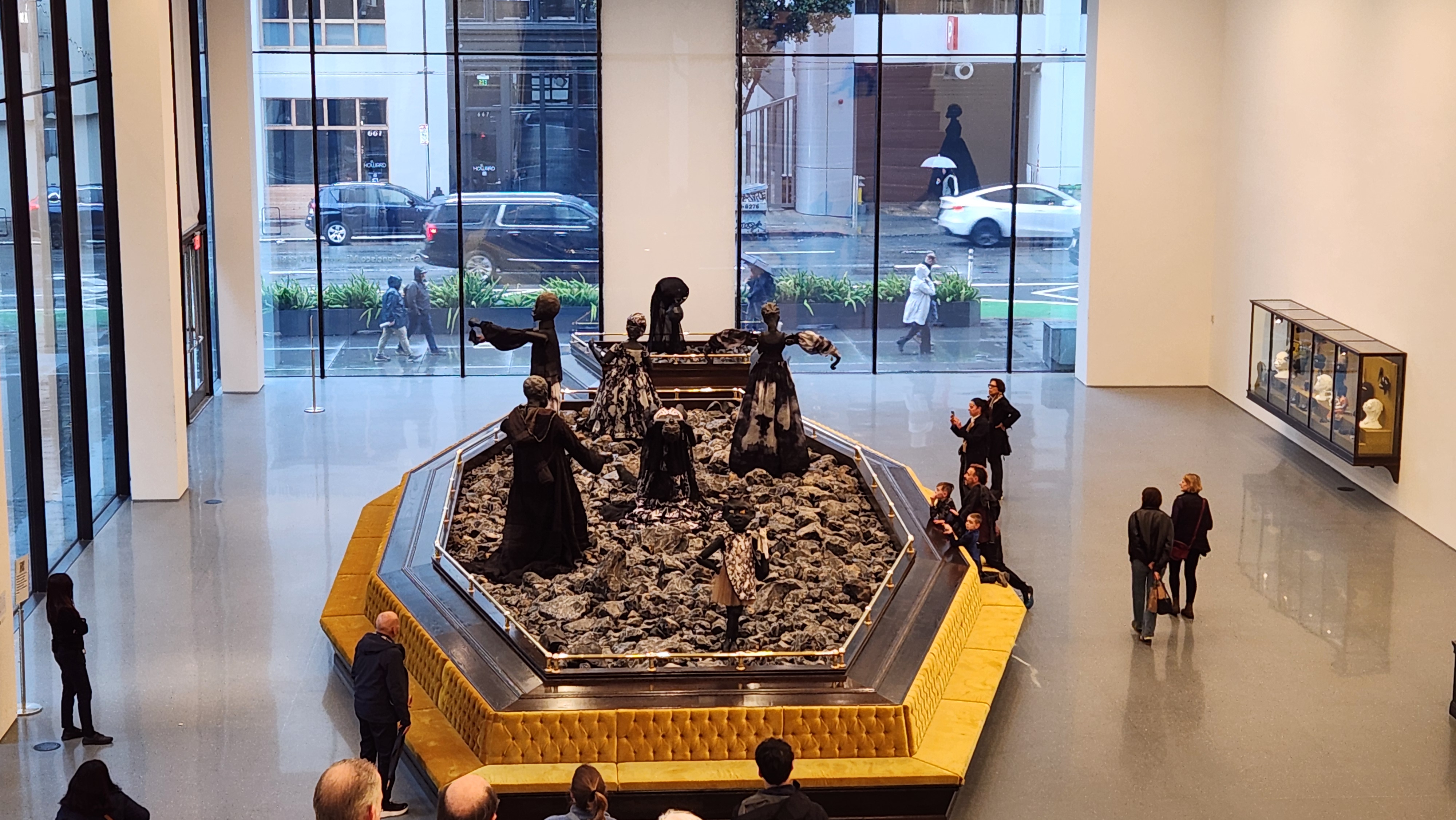 미술관의 입구를 지나면 눈길을 확 사로잡는 공간이 펼쳐진다. 노란 소파가 팔각형을 이루고, 그 중앙에는 로봇처럼 장엄한 인형들이 둥글게 서 있다. 바로 카라 워커의 ‘Fortuna and the Immortality Garden (Machine)’! 이곳은 마치 시간 여행자들의 휴게 공간 같기도 하고, 현대판 신화 속 정원에 들어온 기분이 든다. 독특한 패션의 인형들이 무표정하면서도 강렬한 오라를 내뿜어, “여기가 샌프란시스코! 아무 일이나 일어날 수 있다!”라고 말해주는 듯.
