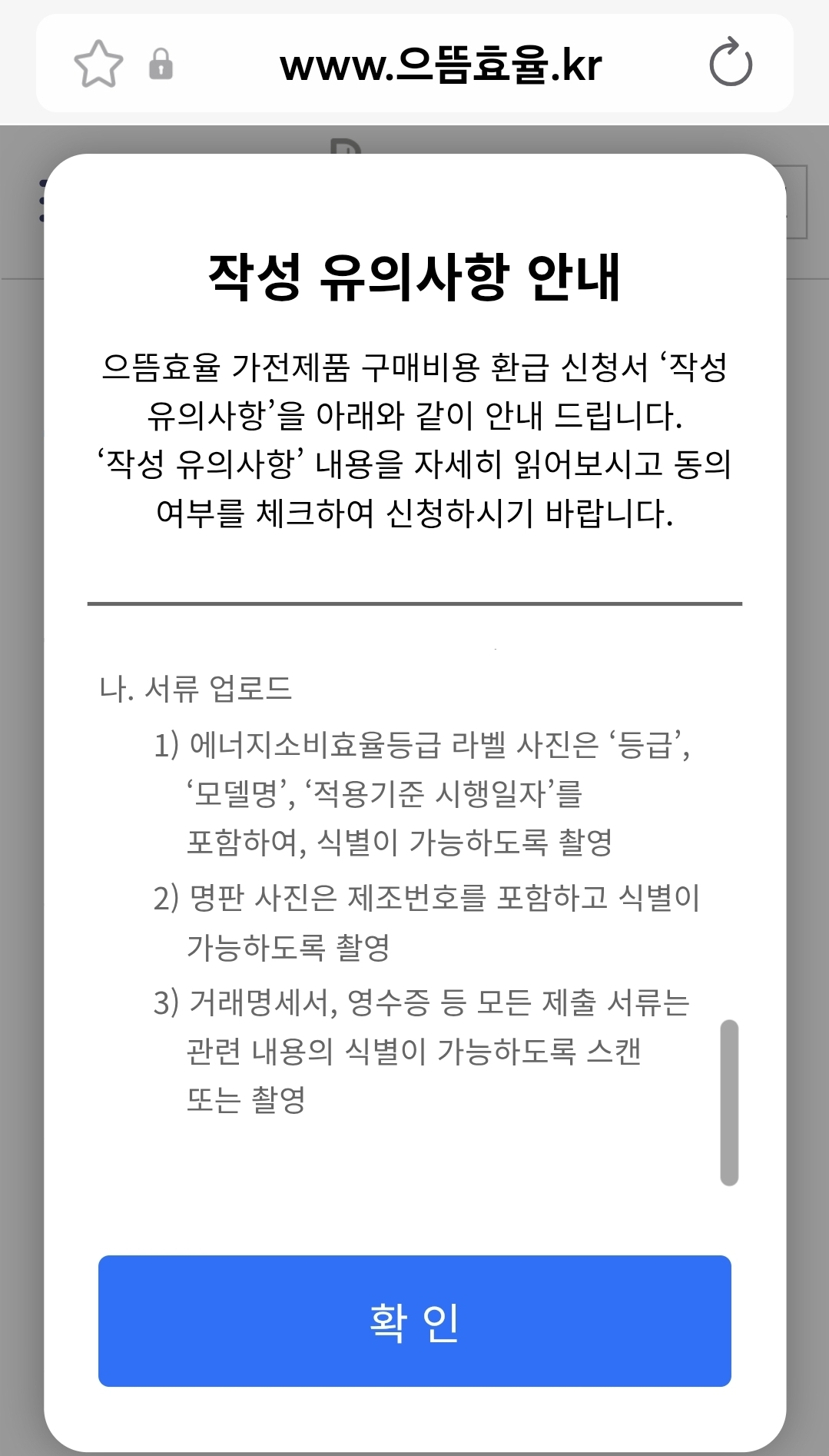 - 제품 등급라벨 사진(모델명, 효율등급, 적용기준일 확인)